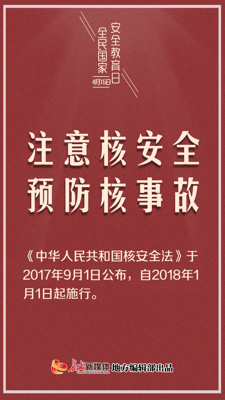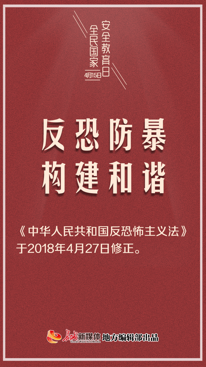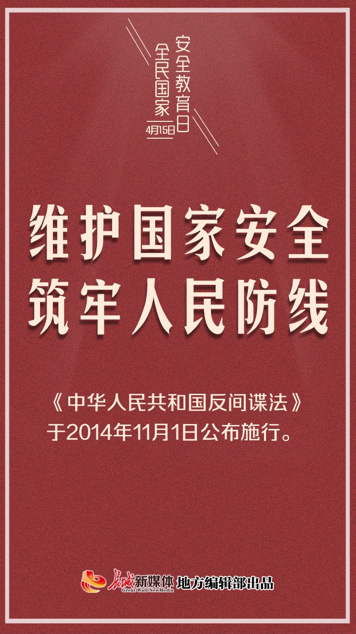 每年4月15日为全民国家安全教育日。今年的活动主题为“坚持总体国家安全观,统筹传统安全和非传统安全,为决胜全面建成小康社会提供坚强保障”。