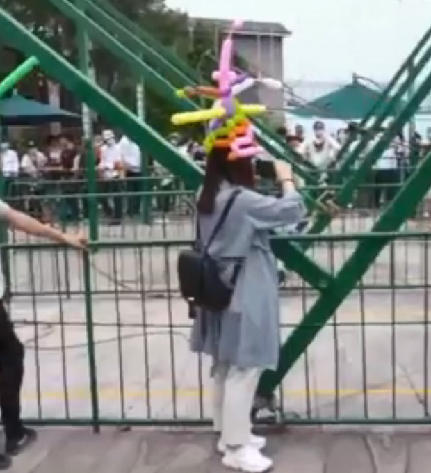 保持安全距离,是健康出游的要求之一。近日,不少到闽清瓷天下海丝谷游玩的游客发现,景区工作人员的头上多出了一顶有趣的帽子:普通的草帽两侧分别绑上了一根1米长的长条气球,晃晃悠悠如同古代官帽,显得格外有趣。