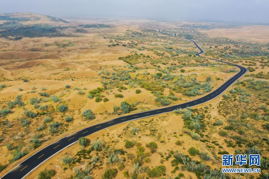这是位于内蒙古鄂尔多斯市达拉特旗境内的库布其沙漠(2020年9月14日摄,无人机照片)。过去,这里寸草不生,风沙肆虐,被称为“死亡之海”。经过几代人的艰苦奋斗和科学创新,库布其沙漠治理成效显著,生态环境明显改善。新华社记者 连振 摄