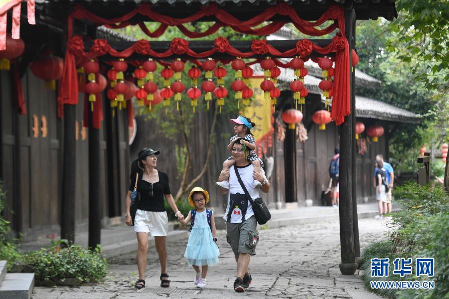 游客在浙江杭州西溪国家湿地公园游览(2020年8月22日摄)。西溪国家湿地公园是罕见的城中次生湿地、中国首个国家湿地公园,集城市湿地、农耕湿地、文化湿地于一体,有“天堂绿肺”之称。新华社记者 黄宗治 摄