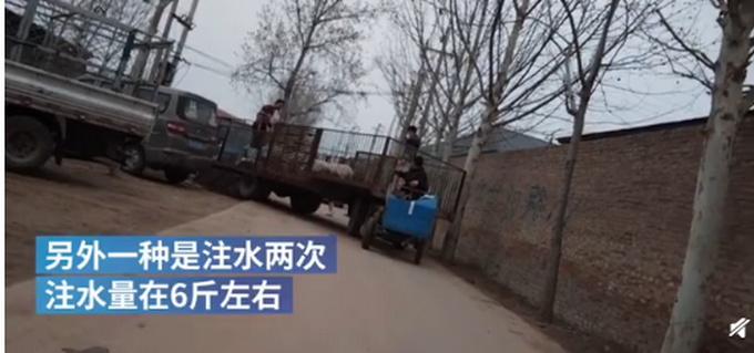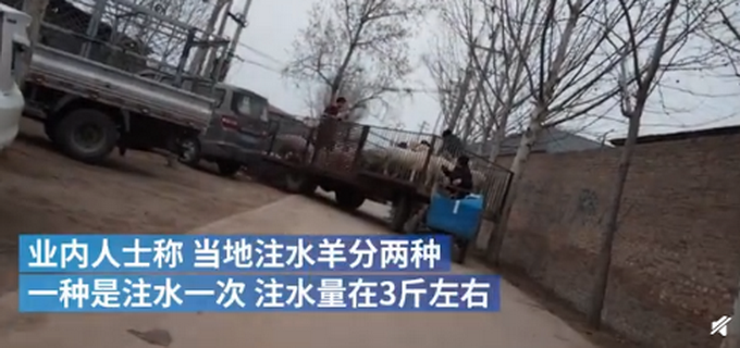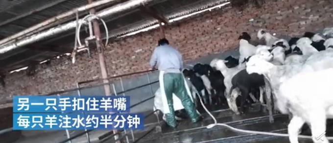 3.15前夕,澎湃新闻暗访山东聊城某大型羊肉屠宰场发现,当地存在给活羊注水后宰杀,每只羊注水量约6斤左右。鲜羊肉批发商坦言,注水羊在当地很普遍。业内人士称,注水羊肉不但破坏肉质,还容易滋生细菌,生长寄生虫。