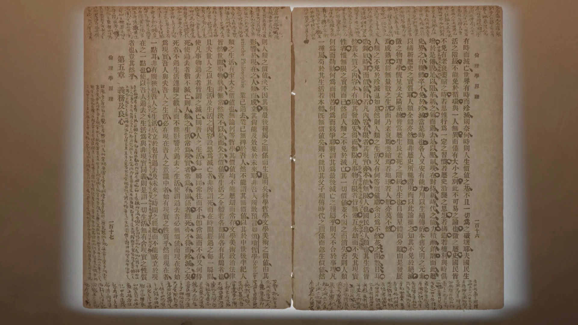 当时,多数同学对哲学不感兴趣,毛泽东花了近一年时间,将全书通读,留下超过12000字的批注。细密而工整的毛笔字,记录着这位年青人当时的伦理观、人生观、历史观、宇宙观。书中的唯物主义观点,也让他“越读越觉得有趣味”。