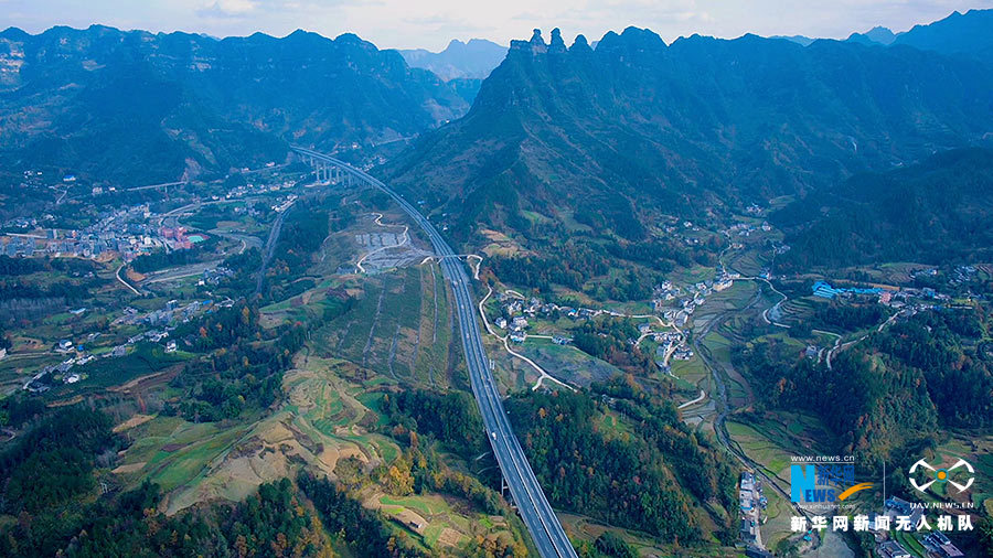 G65包茂高速重庆段,穿越武陵山脉的群山之间。新华网发(向进 摄)