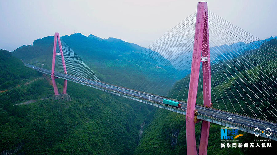 航拍视角下的G65包茂高速武陵山大桥。新华网发(向进 摄)