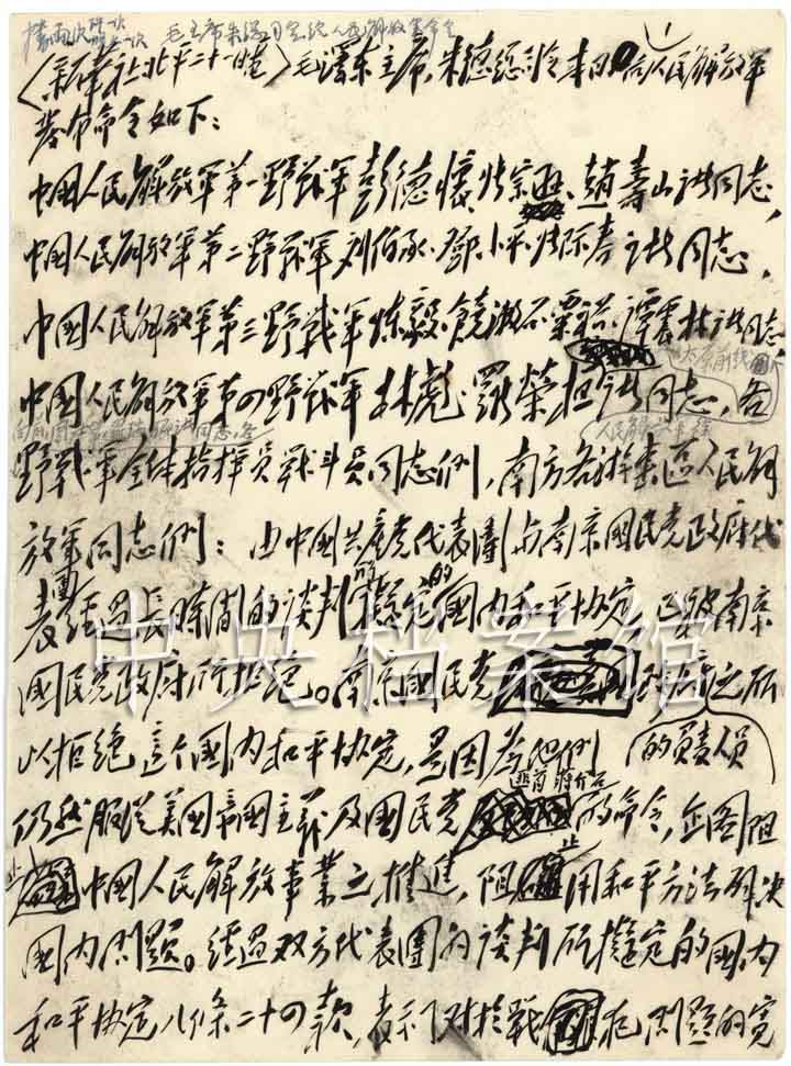 毛泽东起草的他和朱德给人民解放军《向全国进军的命令》。图源:中国共产党新闻网