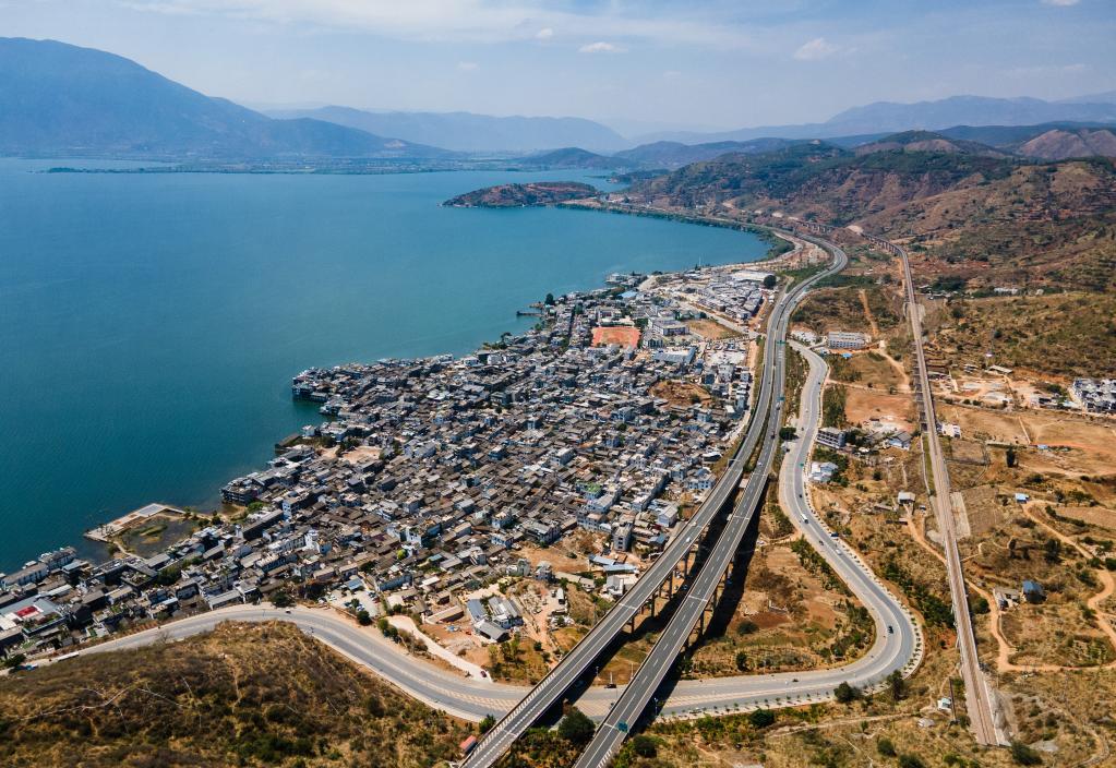 图为4月22日拍摄的途经双廊镇的大丽高速无人机照片。新华社记者王冠森摄