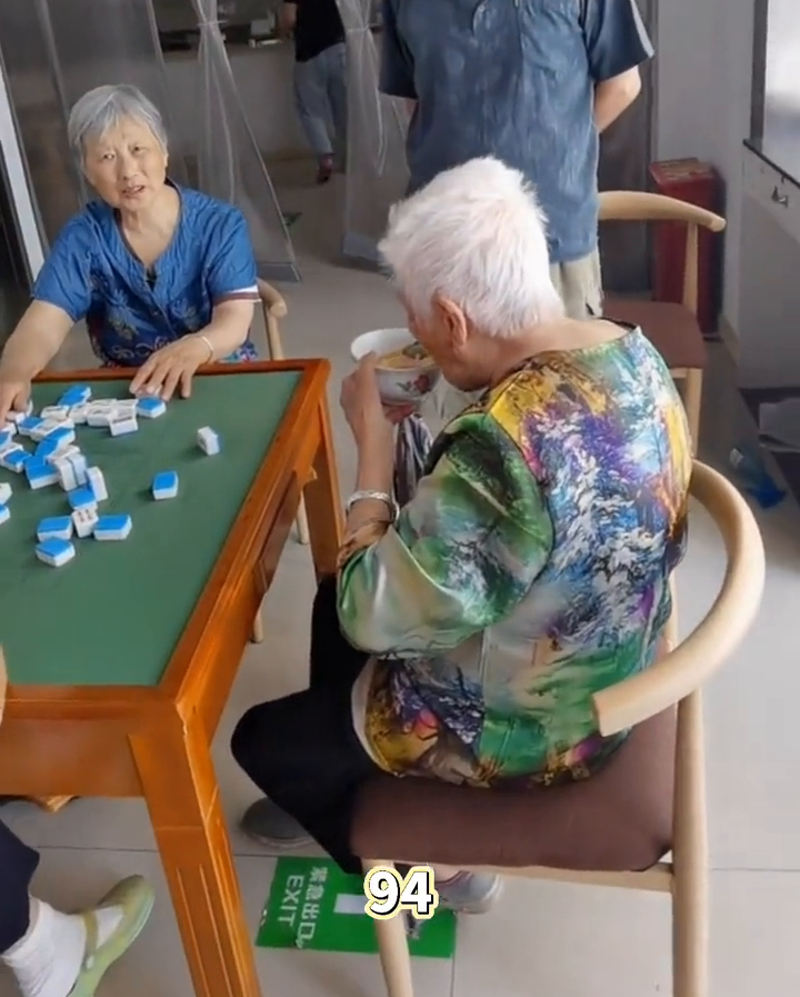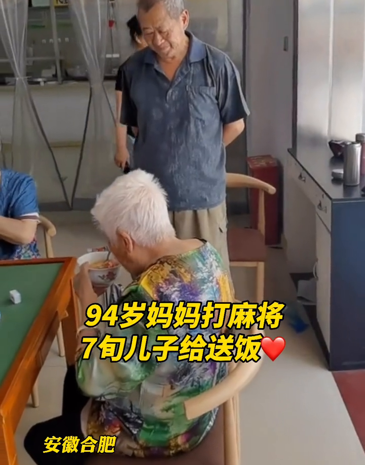 来源标题:画面太温馨!94岁妈妈和朋友打麻将,74岁儿子过来送饭被“嫌弃”