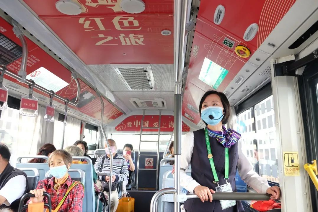 “下一站黄陂北路站,下车请准备,中共一大会址纪念馆就在该站附近,该馆保留了上世纪20年代上海典型的石库门居民风格……”在布满各种“红色元素”的上海中运量公交71路上,乘务员杨静微笑着向乘客讲述“红色故事”。