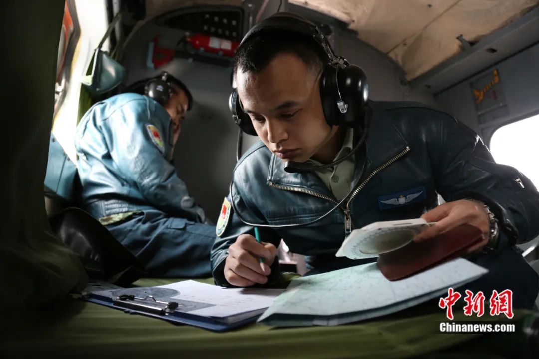 图为李凯涛绘制飞机线路。昆明航空救援支队 供图