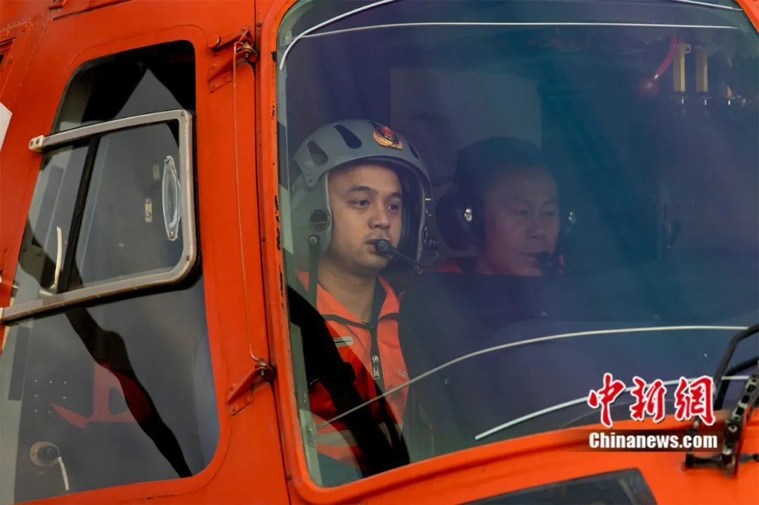 图为刘洪驾驶直升机。昆明航空救援支队 供图