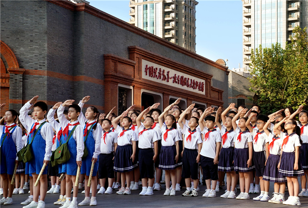 10月1日,中共一大纪念馆举行升国旗仪式。新华社记者 刘颖 摄