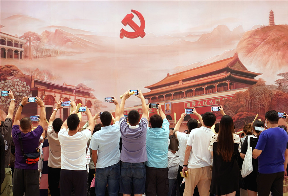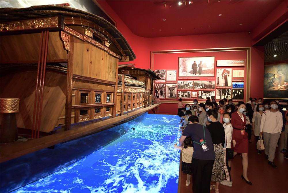10月1日,人们在中共一大纪念馆内参观拍照。新华社记者 刘颖 摄
