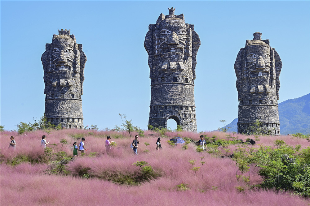 10月1日,游客在重庆市酉阳土家族苗族自治县板溪镇叠石花谷景区游玩。新华社发(冉川 摄)