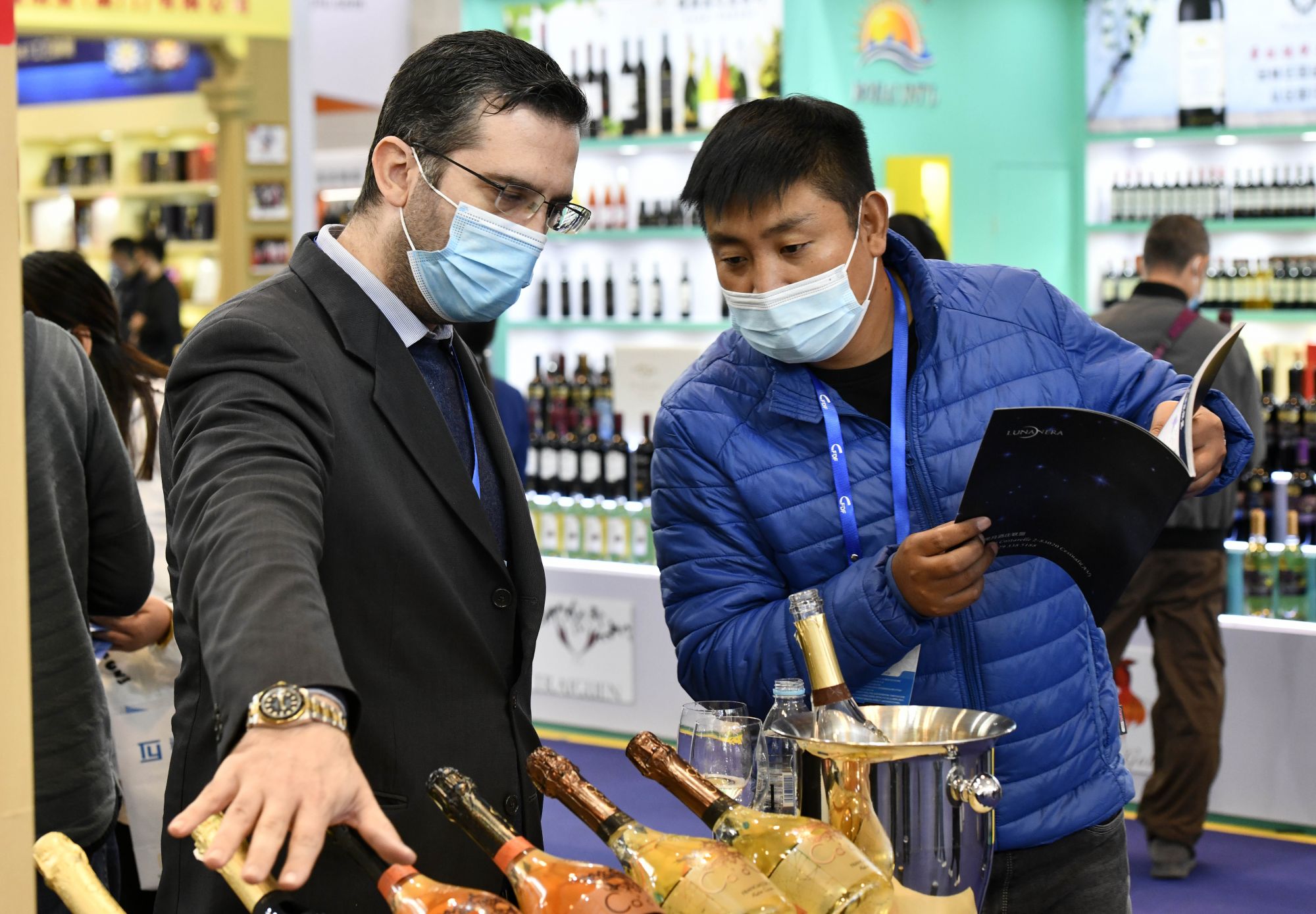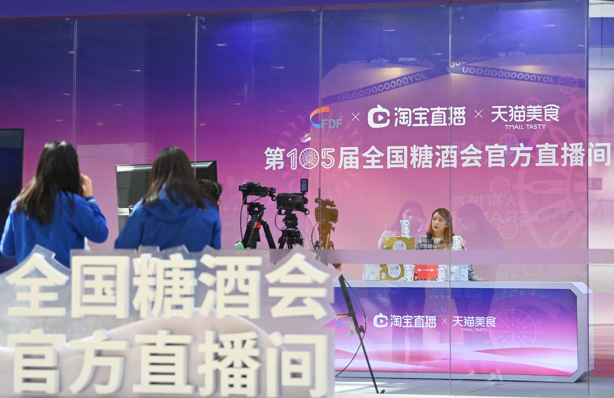 10月19日,工作人员在展览现场设置的直播间内直播。
