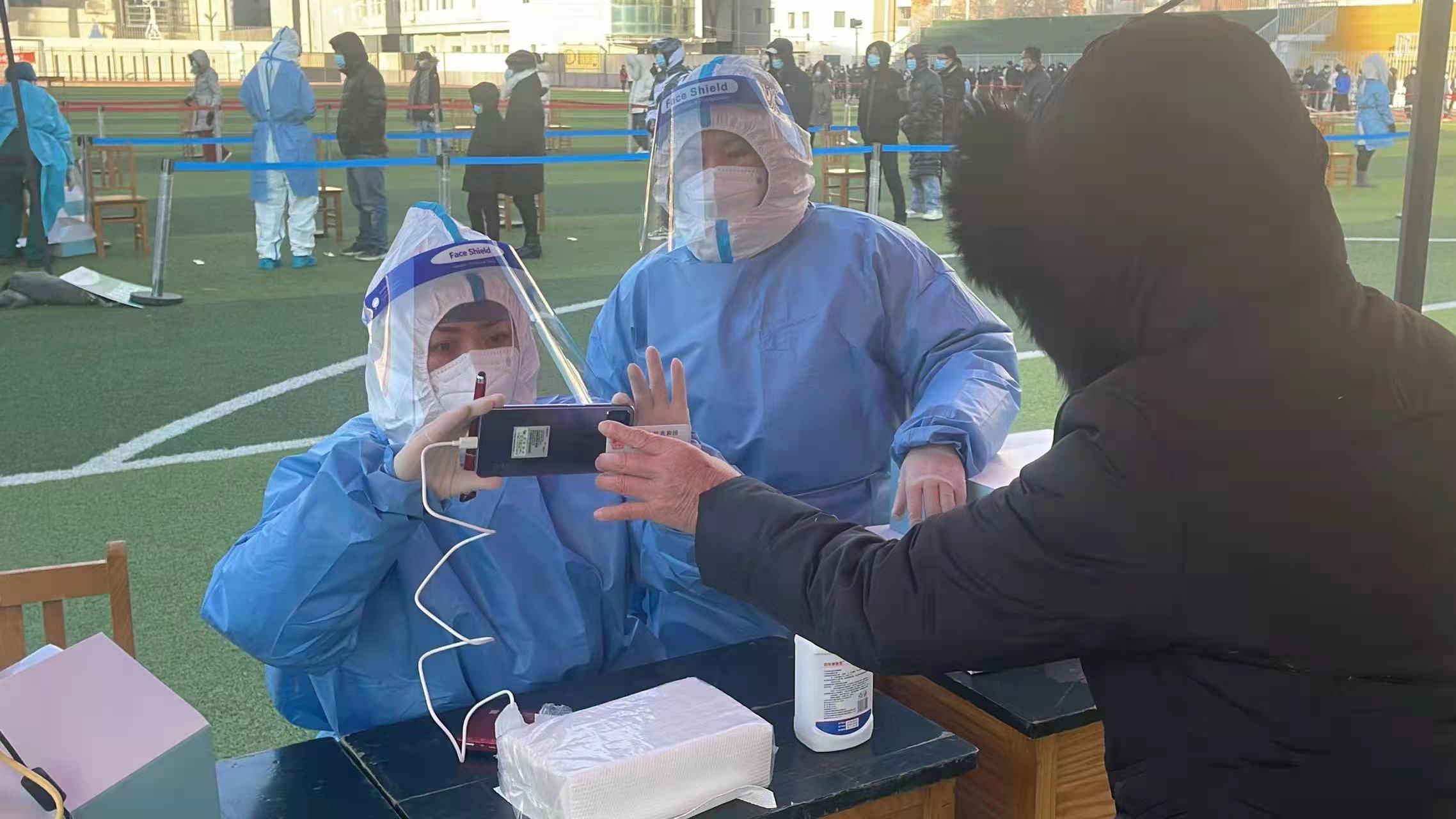 一线防疫人员在使用新系统扫描群众身份证(受访者供图)