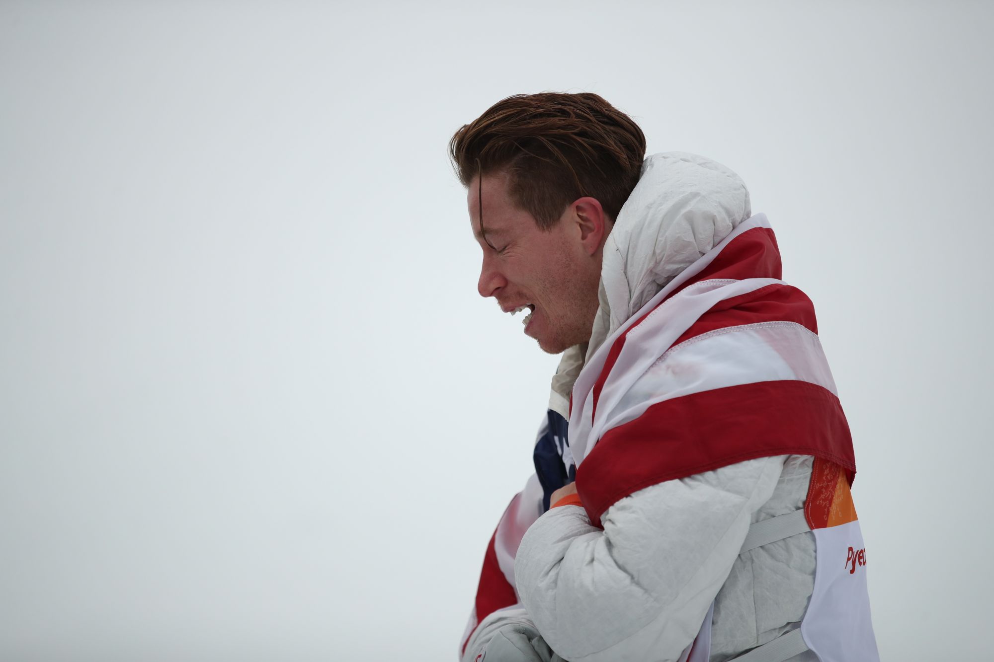 2018年2月14日,2018年平昌冬奥会单板滑雪男子U型场地决赛,美国选手肖恩·怀特在夺冠后喜极而泣。新华社记者费茂华摄