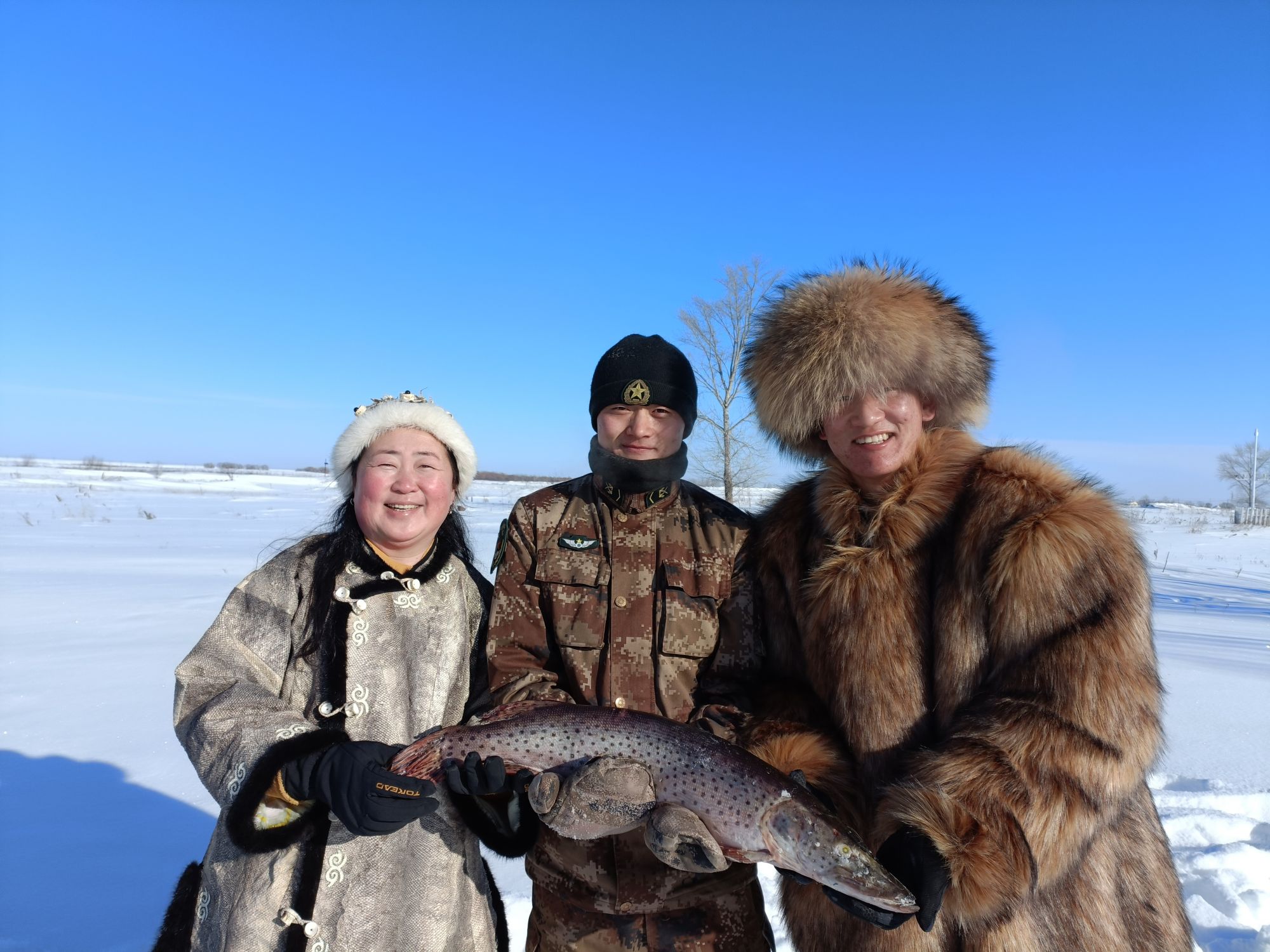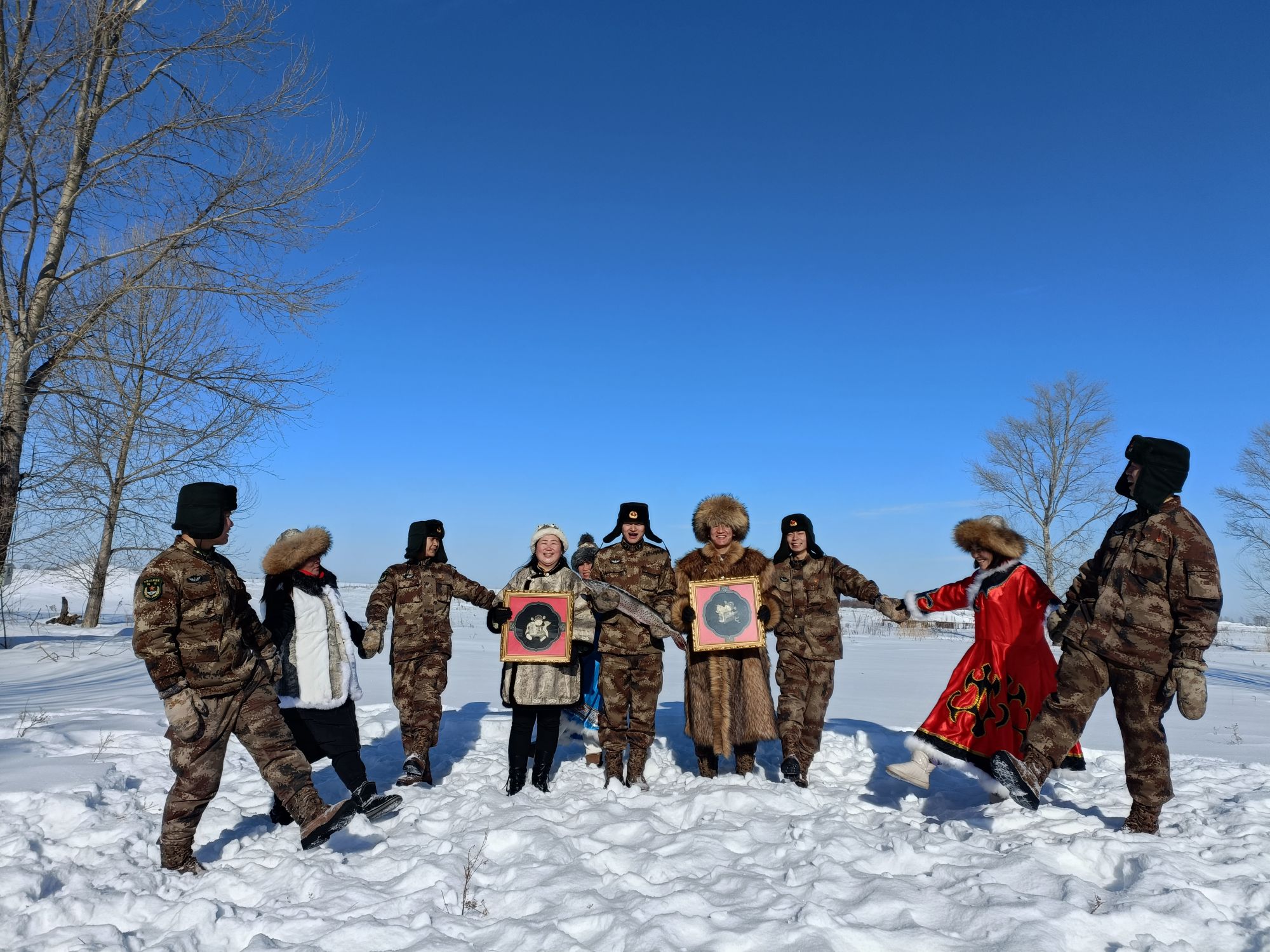 ↑连队官兵与赫哲群众一同参加驻地“冬捕节”