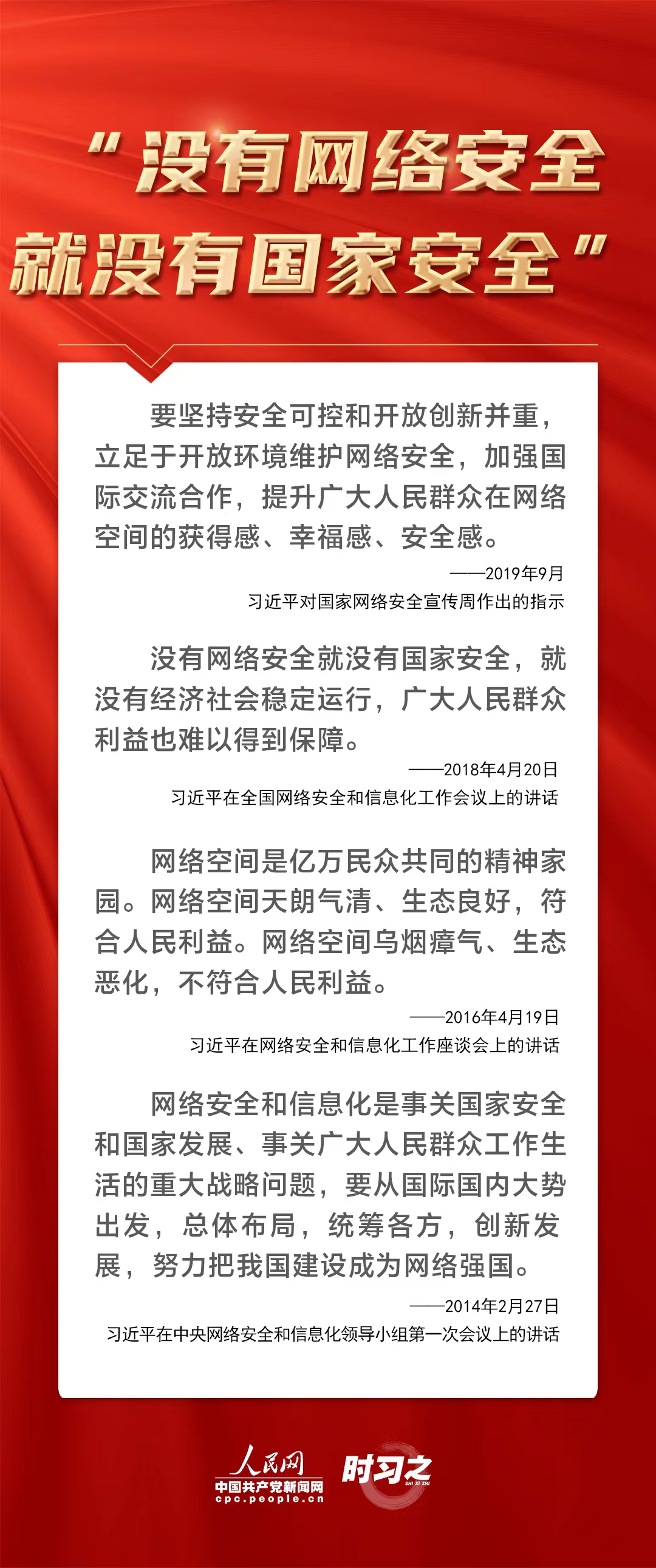 没有网络安全就没有国家安全。今年是《中华人民共和国网络安全法》施行五周年。一直以来,习近平总书记高度重视网络安全和信息化工作,敏锐把握信息时代“时”与“势”,多次在不同场合就网络安全发表一系列重要论述,为维护国家网络安全,筑牢国家网络安全屏障奠定基石。