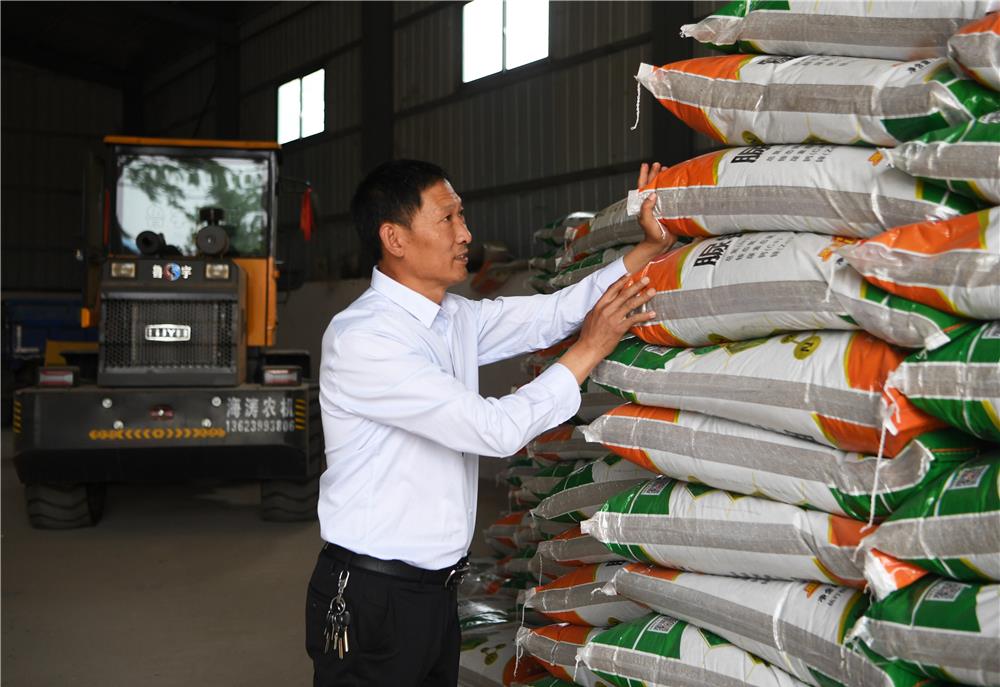 5月26日,在河南省南阳市唐河县湖阳镇张湾村,种粮大户赵建成在整理仓库里的化肥,准备夏收之后的夏种。新华社记者 张浩然 摄
