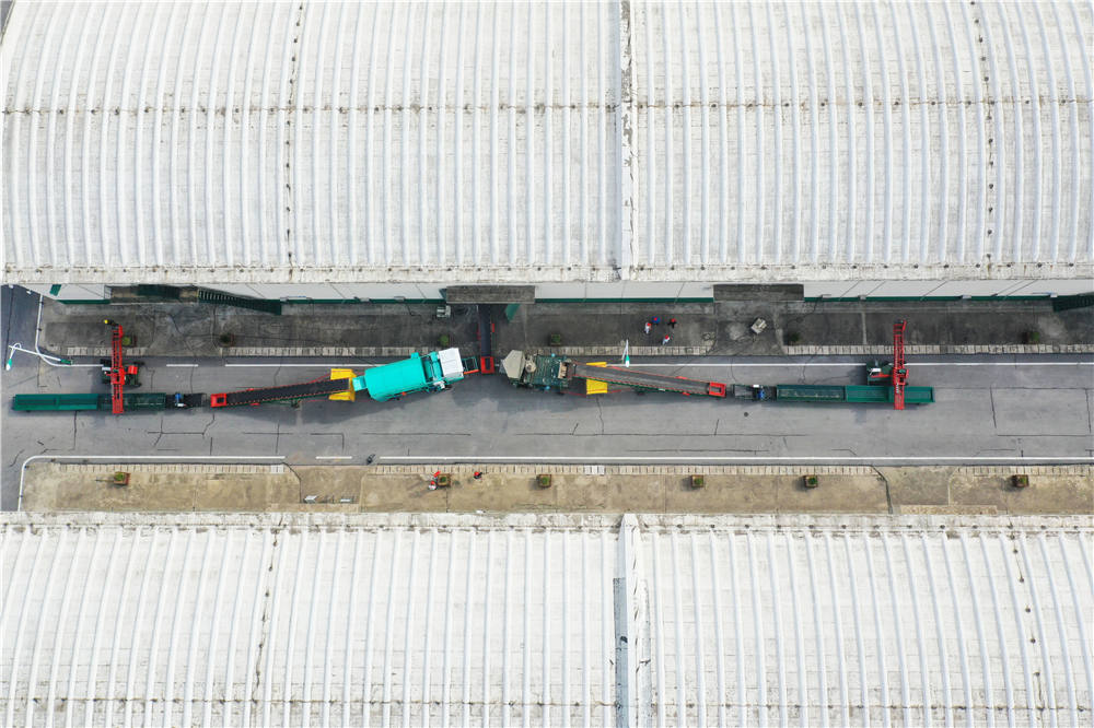 5月24日,在中央储备粮邓州直属库有限公司内,粮食入库全套流程设备已架设完毕(无人机照片)。新华社记者 张浩然 摄