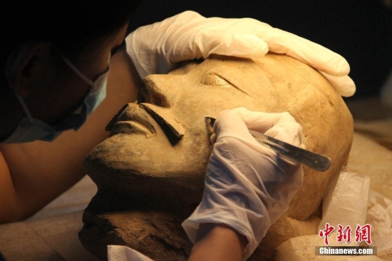 位于陕西省西安市临潼区的秦始皇帝陵博物院内,工作人员正在修复兵马俑。 中新社记者 张一辰 摄
