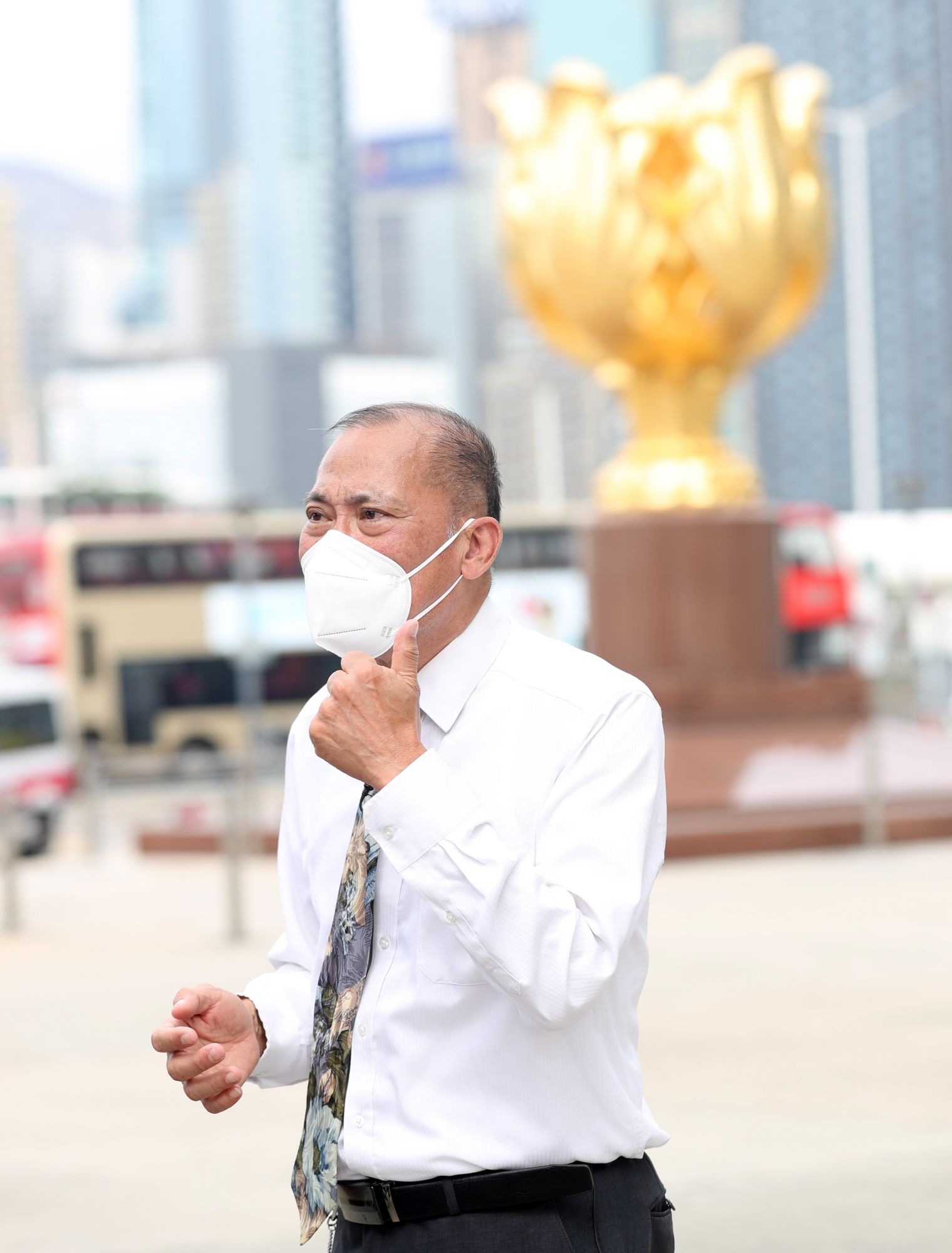 在香港的金紫荆广场上,已经退休的柴家辉接受采访(4月22日摄)。新华社记者 李钢 摄