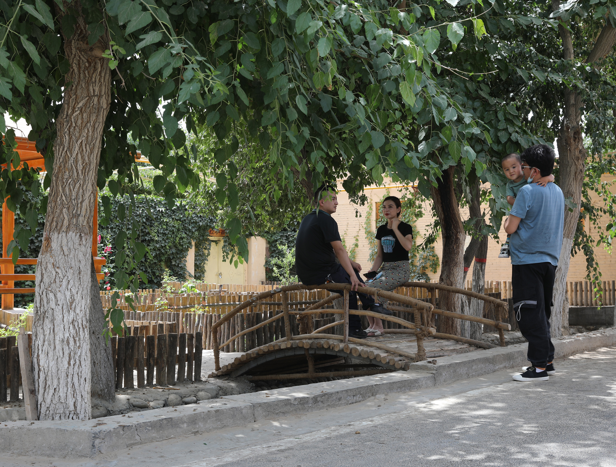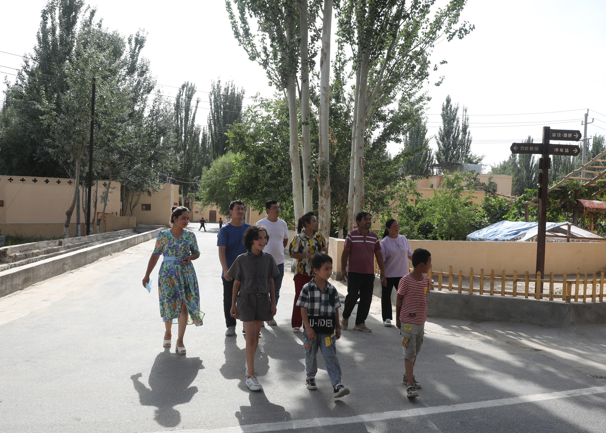 和田县县委常委、统战部部长艾尼瓦尔·阿迪力告诉记者,2019年全县脱贫摘帽后,对于如何推进乡村振兴,县委提出先试点,再以点带面,稻香村就是乡村“开放式”旅游的试点村。这个村种植水稻上万亩,颇有“水乡”风貌,315国道穿村而过,交通优势明显,最关键的是基层干部通过细致入微的工作,激发起群众积极支持和参与旅游兴村的热情。