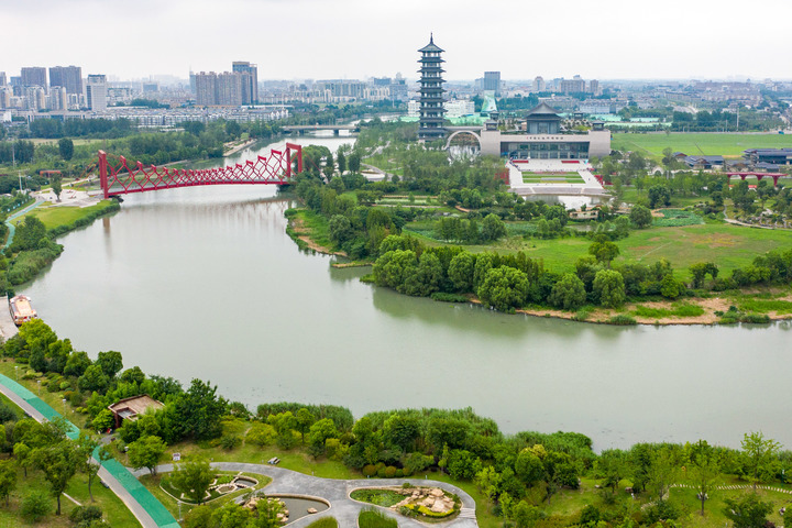 这是5月26日拍摄的河北省沧州市吴桥县运河“五季”公园景色(无人机照片)。新华社记者 骆学峰 摄