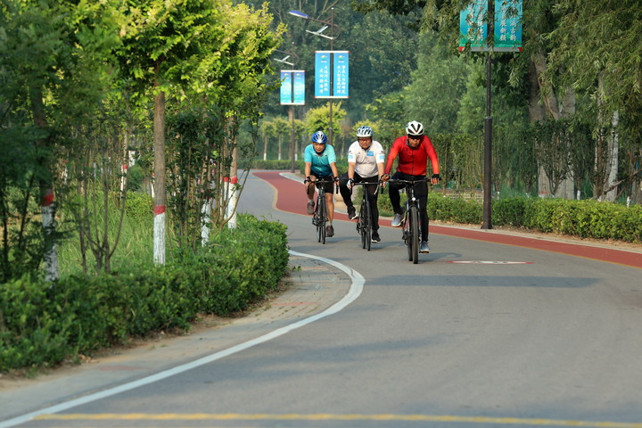 在河北沧州市区,清晨时分,绿意盎然的运河公园迎来了“打卡”的市民。有的悠闲散步,有的驻足拍照,不时有健走队喊着欢快的口号从身边经过。沿河堤一路向南,清风楼、南川楼、朗吟楼、百狮园、运河公园……水蜿蜒,路逶迤,景连绵,人们乐享其中。