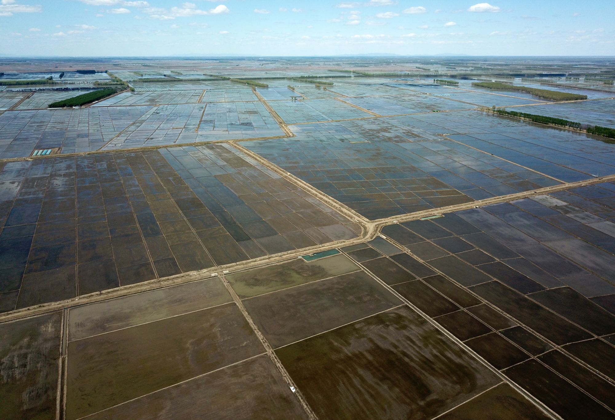 5月18日拍摄的北大荒集团七星农场有限公司的稻田(无人机照片)。新华社记者 王建威 摄
