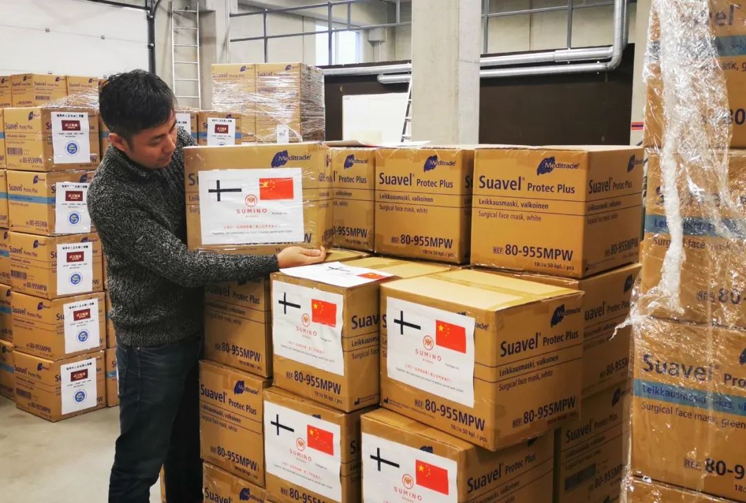 2020年1月31日,芬兰赫尔辛基,当地华人协助整理捐赠国内的物资 朱昊晨摄 / 本刊