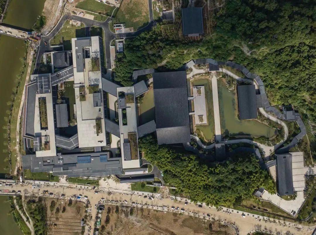 杭州国家版本馆又名“文润阁”,建筑设计围绕“宋代园林神韵的当代藏书建筑”展开,总建筑面积10.31万平方米,包括主书房、南书房、文润阁、山体库房、附属用房等共计13个单体。