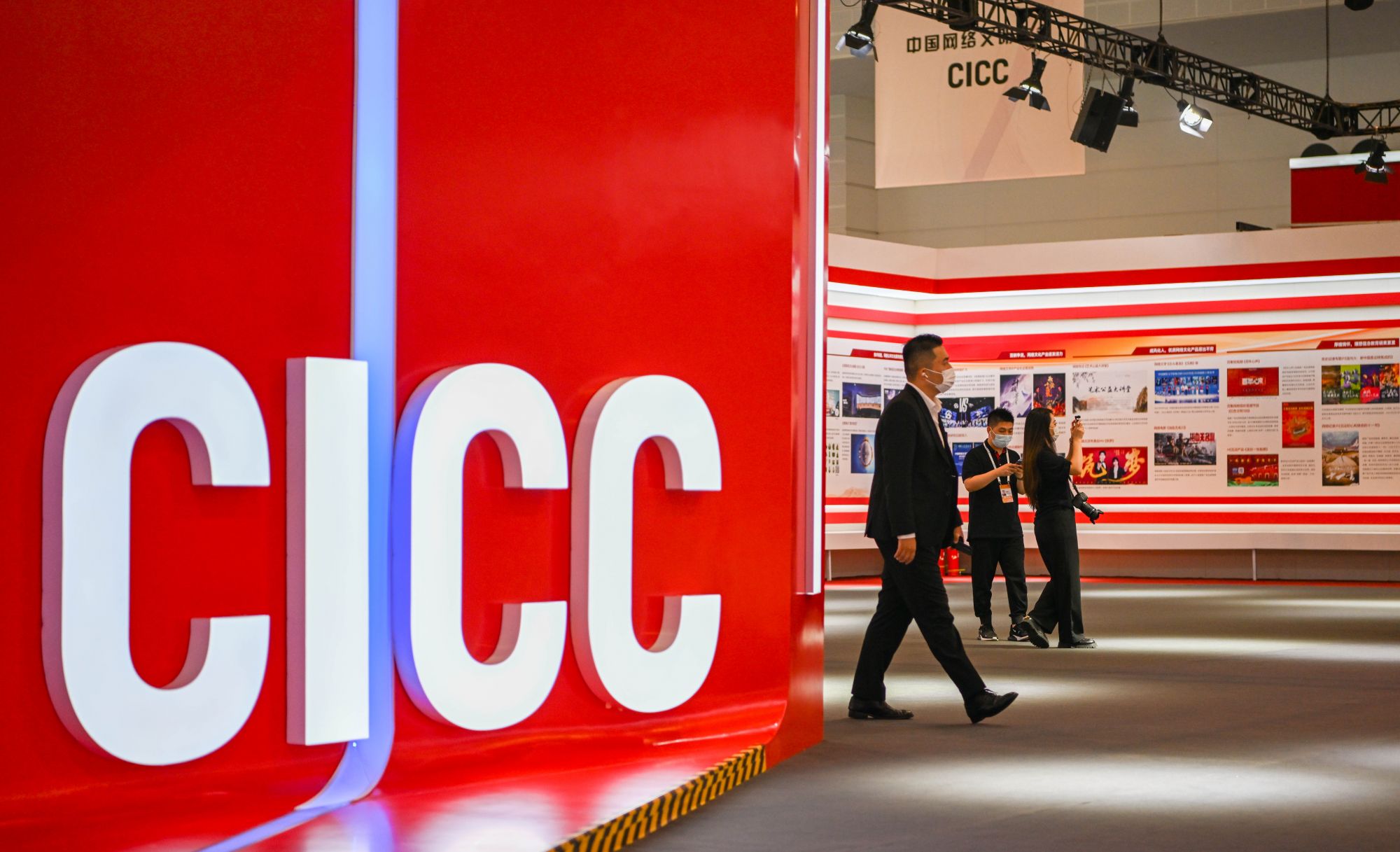 ——成果展上,不少人在交流互鉴展区驻足。2021年中国有约、中英互联网圆桌会议、中坦网络文化交流会……一个个生动的场景,记录了我国以网为媒加强文明互鉴的历程。