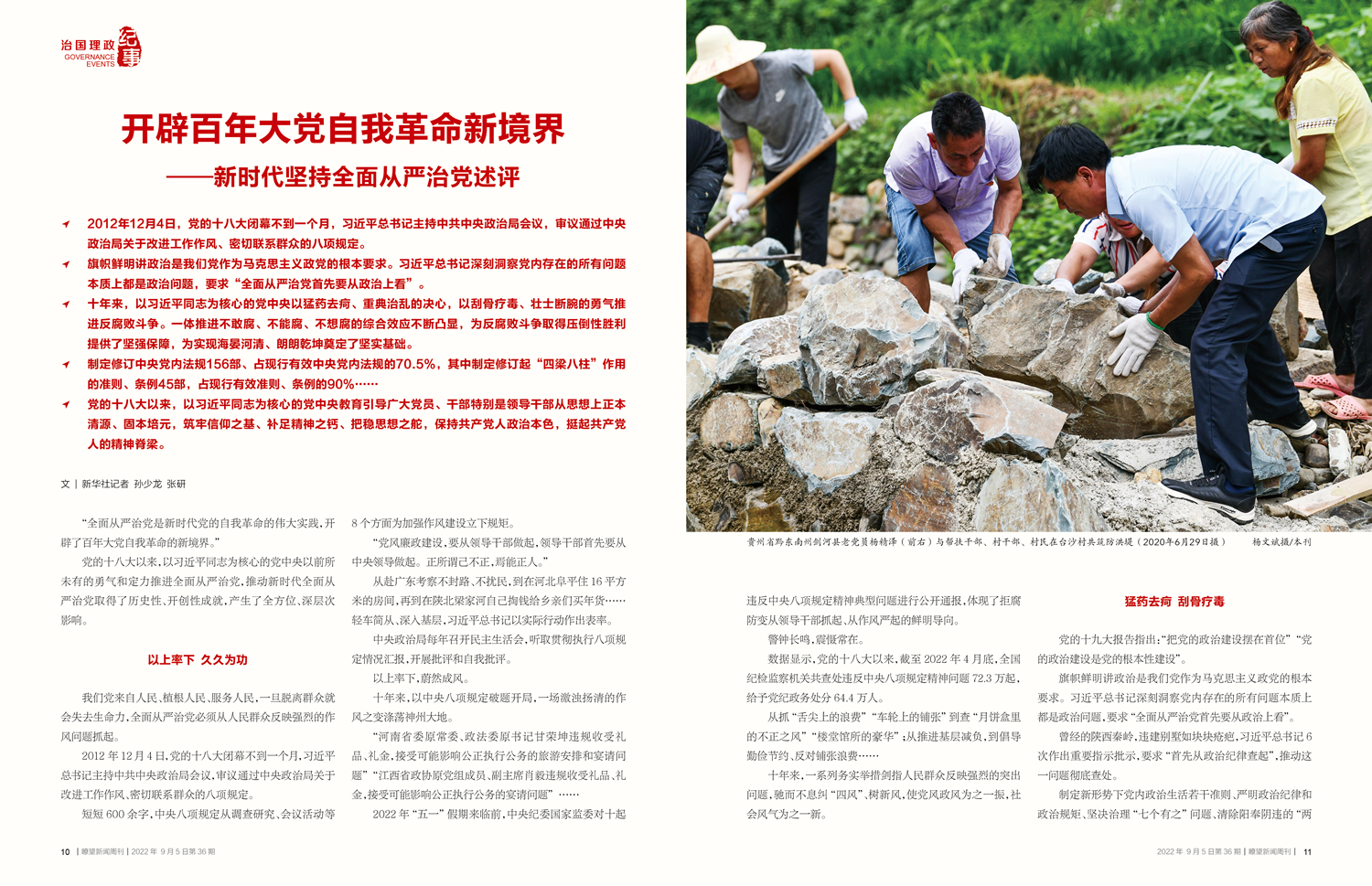 “全面从严治党是新时代党的自我革命的伟大实践,开辟了百年大党自我革命的新境界。”