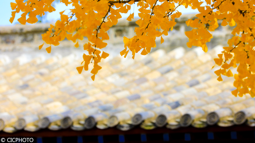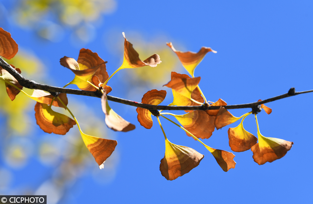 ↑10月17日在河北省石家庄市新乐市伏羲公园内拍摄的银杏叶。CICPHOTO/贾敏杰 摄