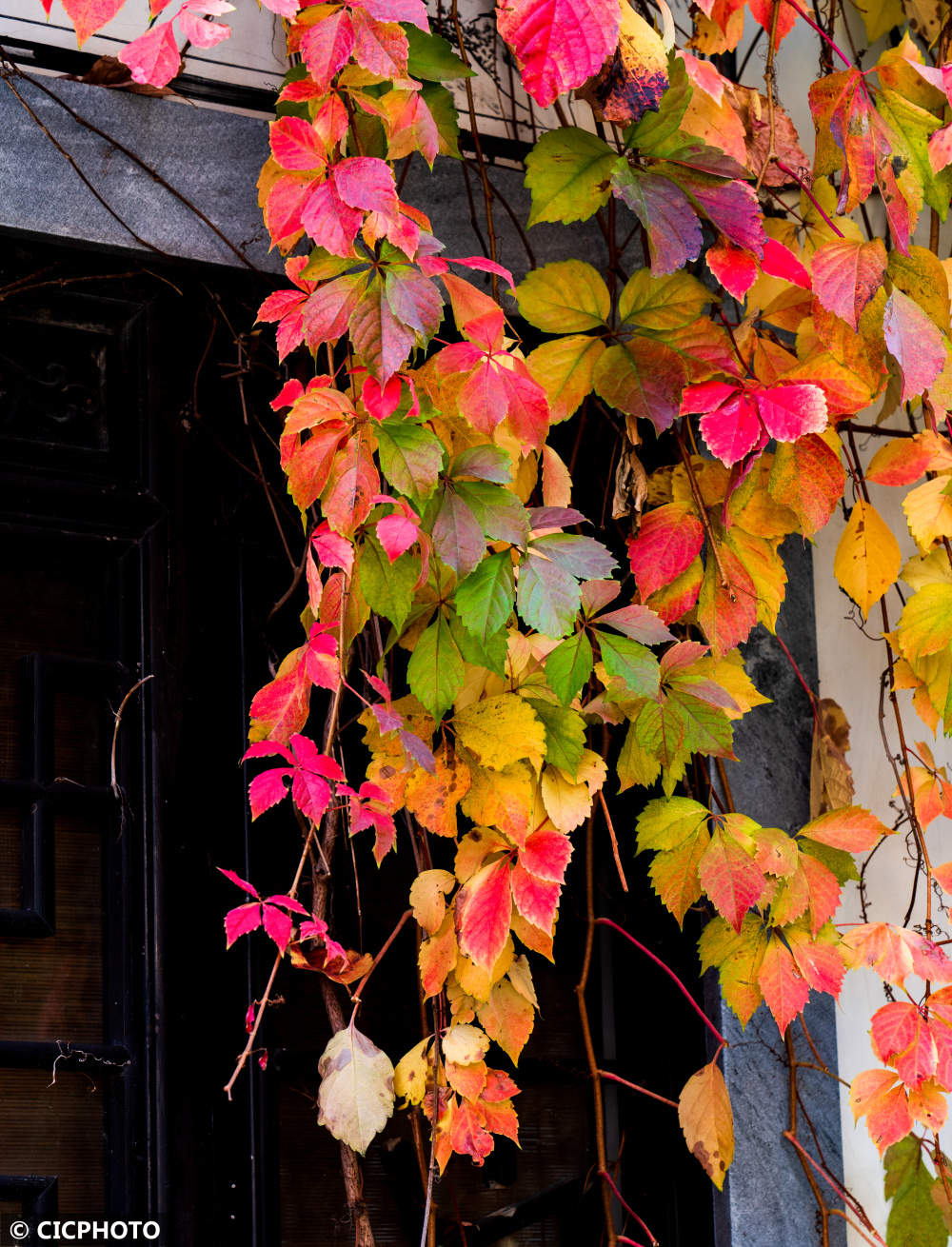 ↑11月10日在安徽省芜湖市拍摄的五叶地锦。CICPHOTO/水从泽 摄