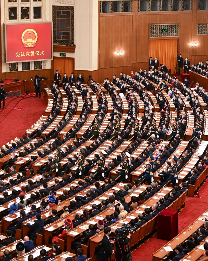 3月10日,中华人民共和国第十四届全国人民代表大会第一次会议宪法宣誓仪式在北京人民大会堂举行。