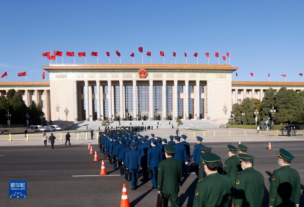 3月12日,十四届全国人大一次会议在北京人民大会堂举行第五次全体会议。这是全国人大代表走向会场。
