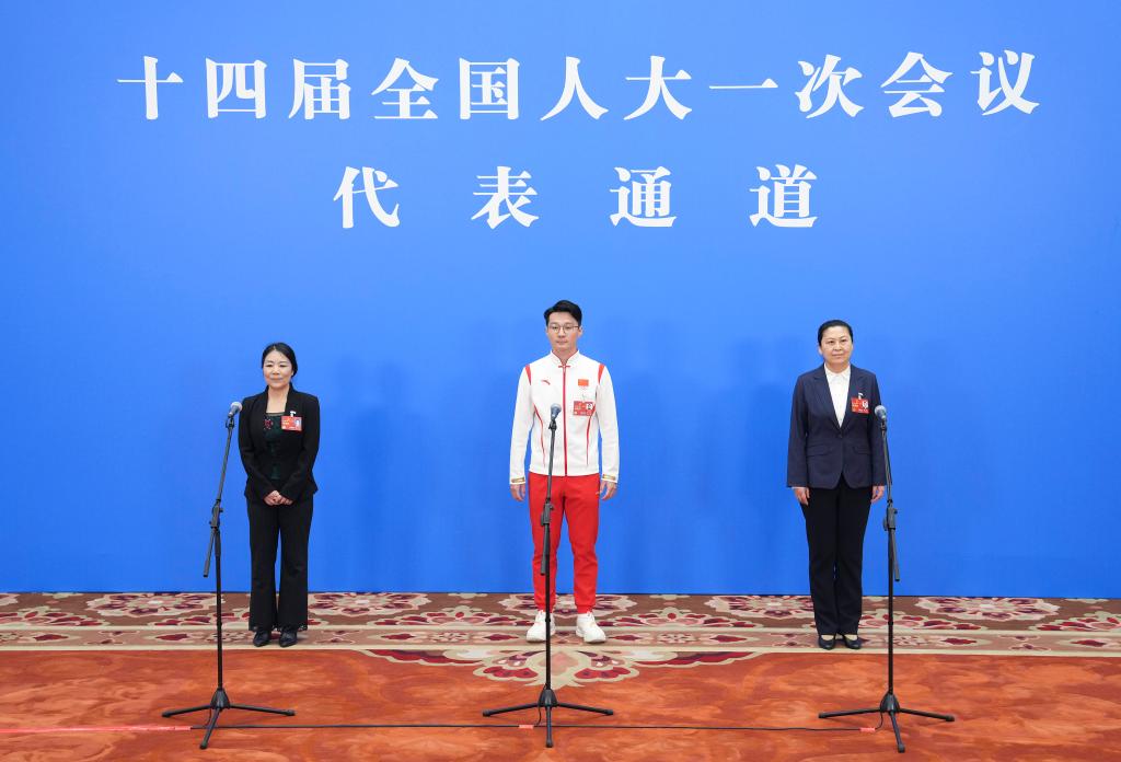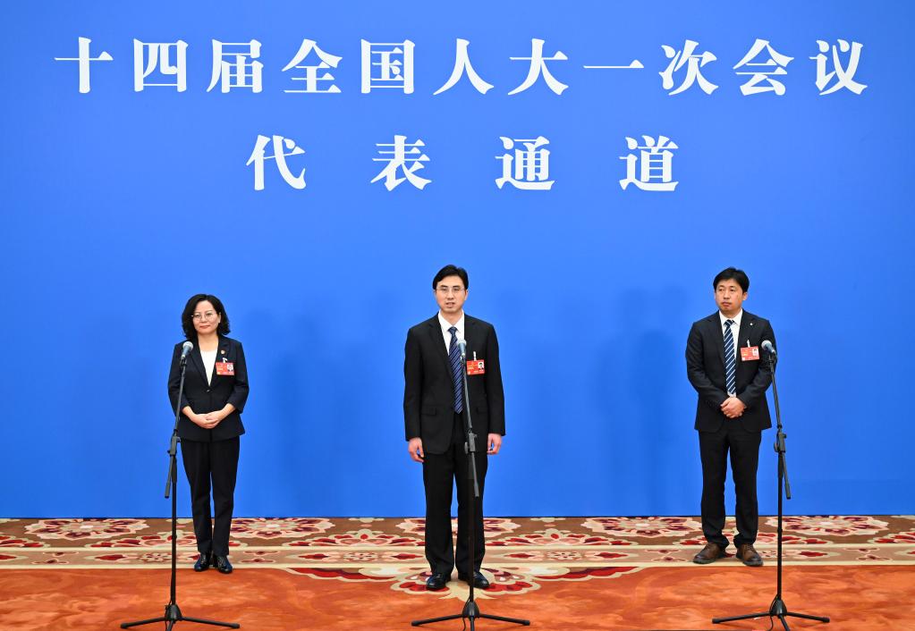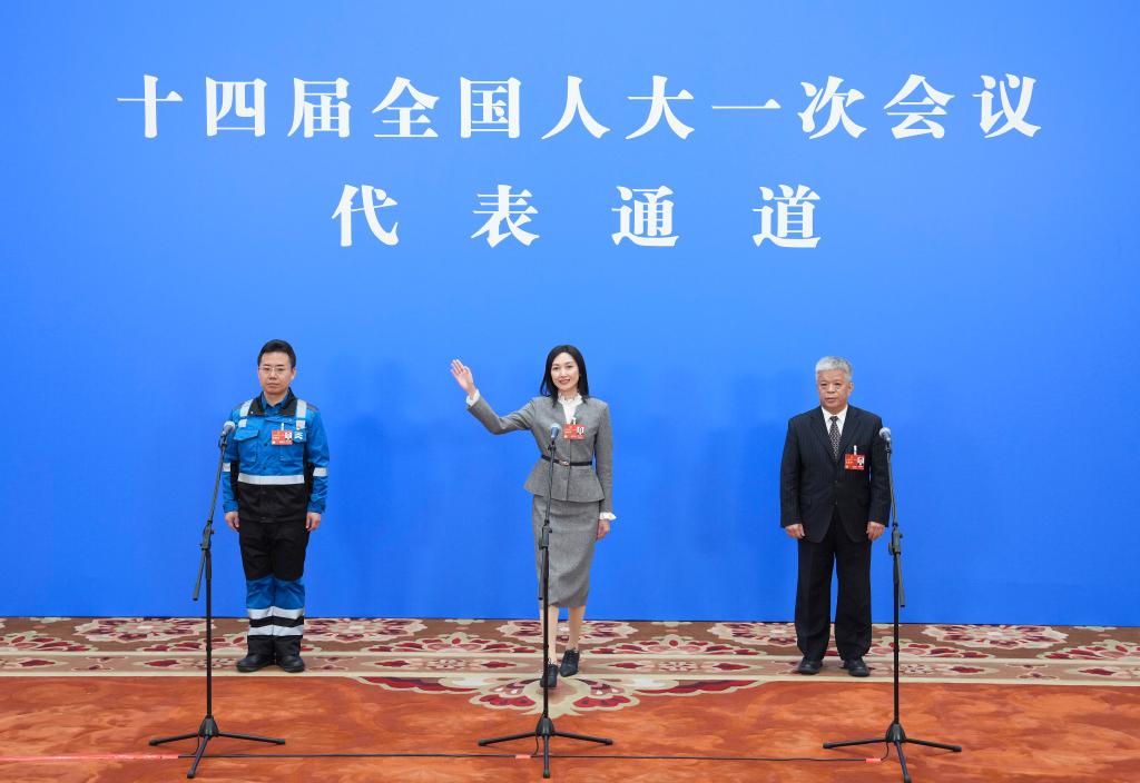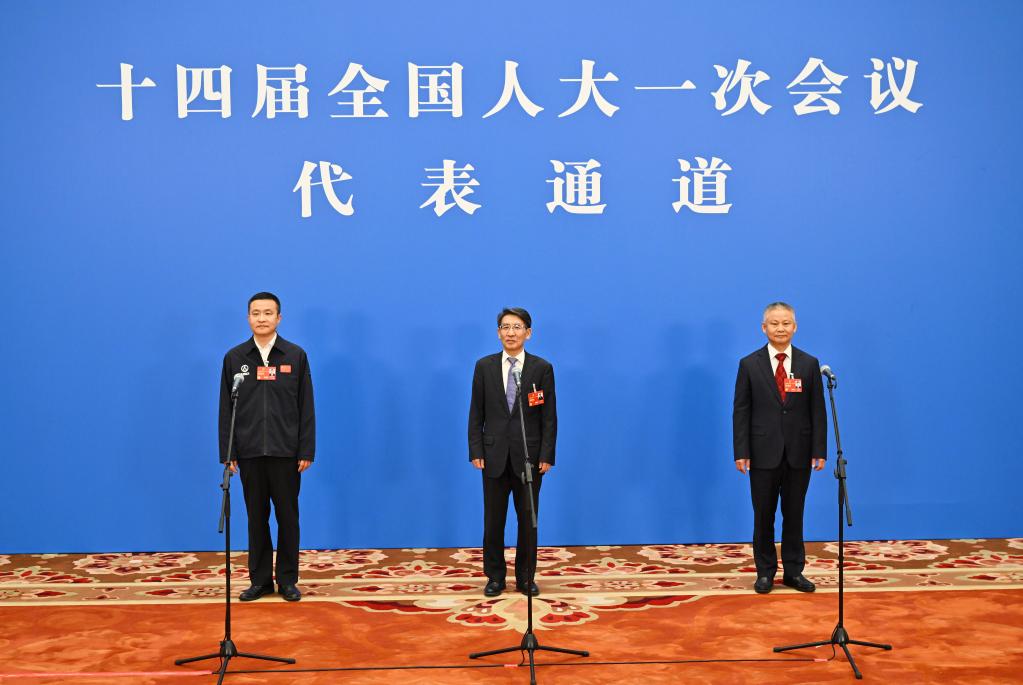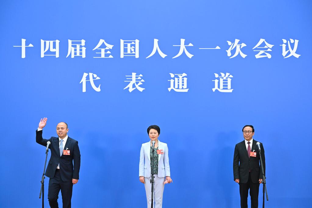 全国两会期间,人民大会堂新闻发布厅,十四届全国人大一次会议的三场“代表通道”如约开启。