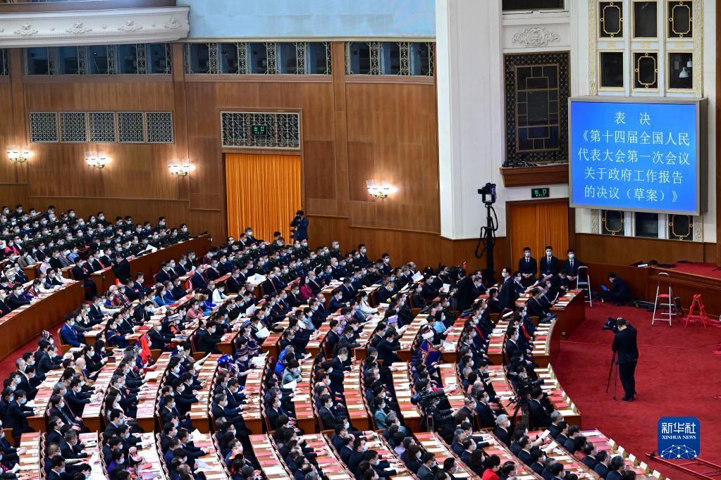3月13日,第十四届全国人民代表大会第一次会议在北京人民大会堂举行闭幕会。新华社记者 饶爱民 摄