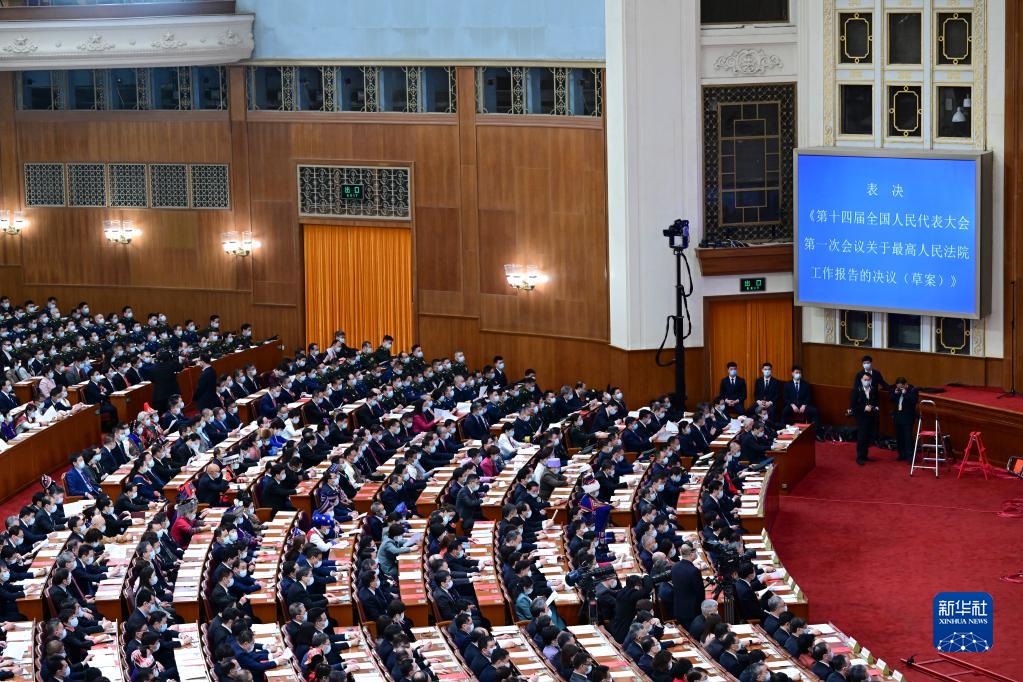 3月13日,第十四届全国人民代表大会第一次会议在北京人民大会堂举行闭幕会。新华社记者 翟健岚 摄