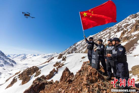 移民管理警察到达3600米的冰达坂上。