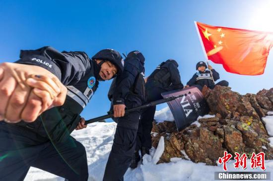 民警在海拔3600米的莫斯吾冰达坂上开展巡逻踏查。