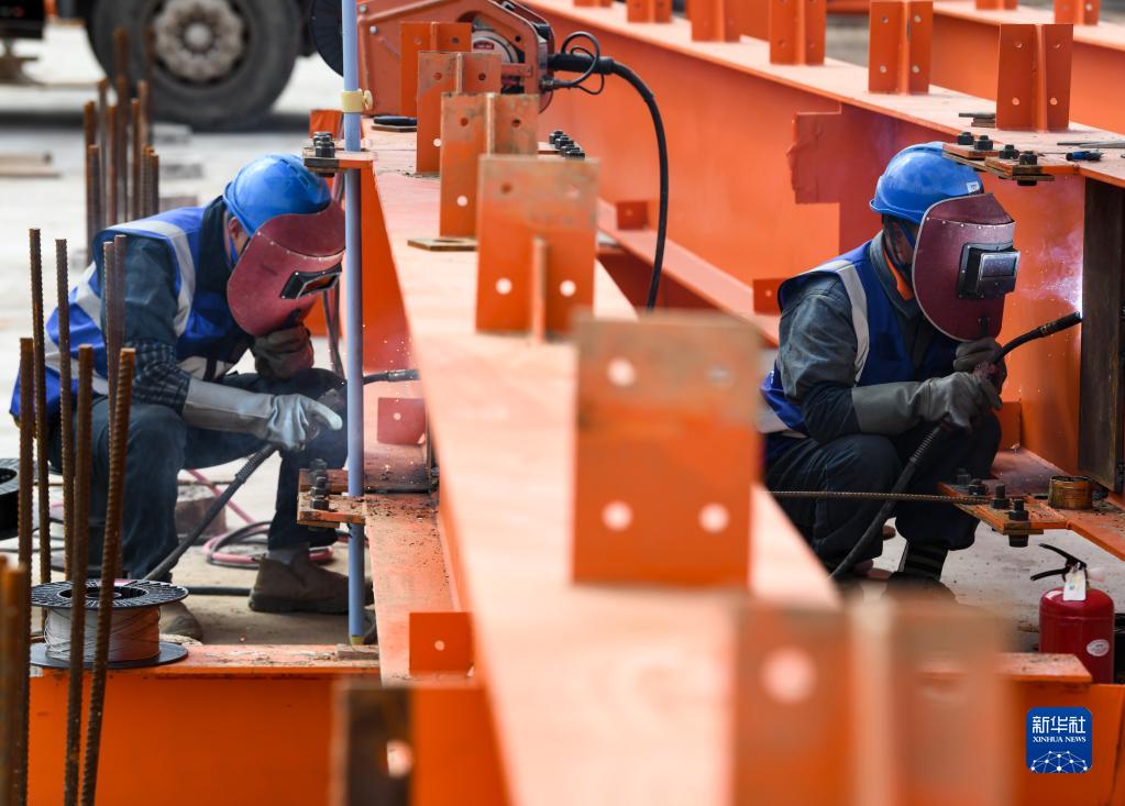 4月27日,在中建安装集团有限公司位于四川遂宁市射洪市的厂房增产扩能项目建设现场,参建者参加钢结构柱焊接比赛。