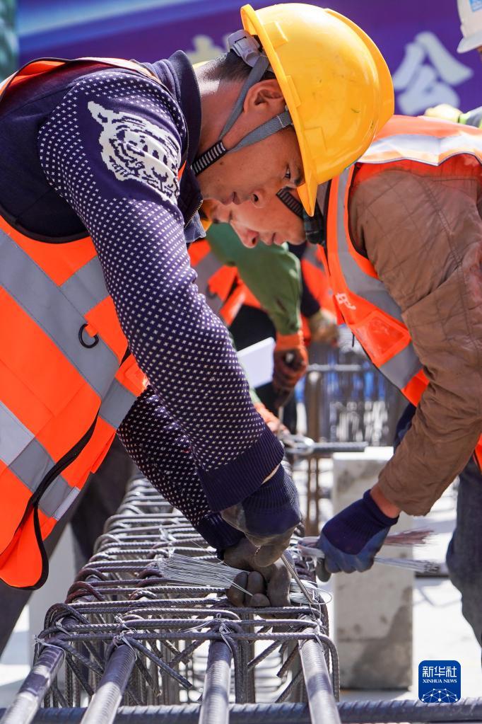 当日,多地举行技能比武活动,建设者们一展身手,迎接“五一”国际劳动节。