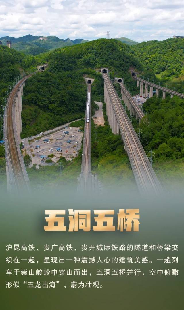 贵广高铁全长857公里,跨越中国地势第一、二级阶梯,全线有238个隧道和510座桥梁,桥隧比达83%,因建设难度高被称为“超级铁路”。