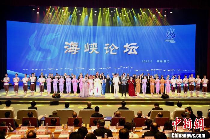 6月17日,第十五届海峡论坛大会在福建厦门举行。图为海峡论坛大会上文艺演出人员集体谢幕。 中新社记者 王东明 摄