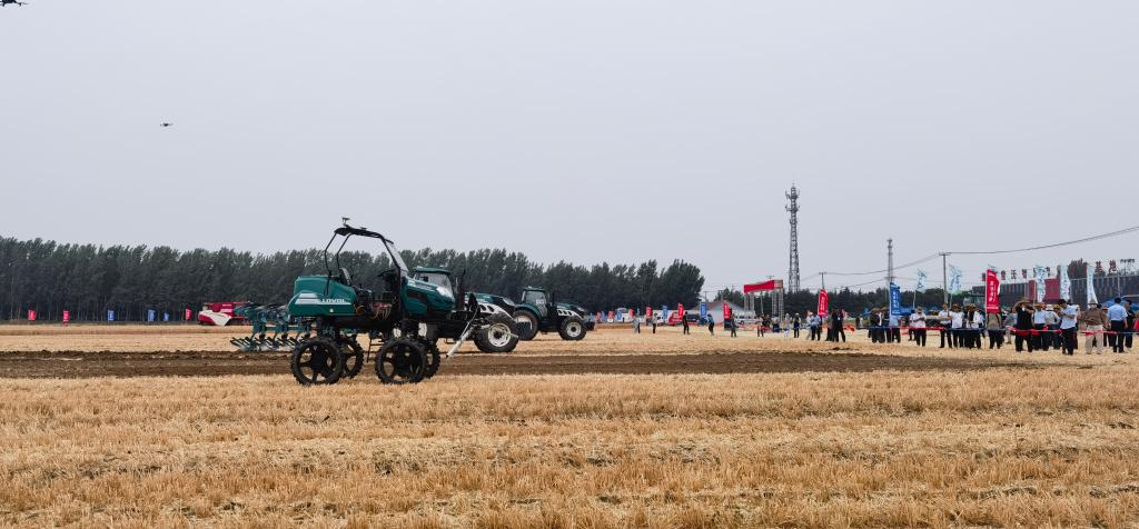 2023年中国农机推广“田间日”活动现场,无人驾驶农机正在田间作业。新华社记者 叶婧 摄
