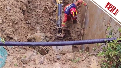 来源标题:土堆塌陷一男子被困3米深管道 救出时成“泥人”