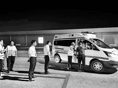 机场运行指挥中心接到机组通知,随机运输有人体活体器官,需争分夺秒,机场第一时间启动应急救援响应机制,通知救护车辆于机位前就位待命。
